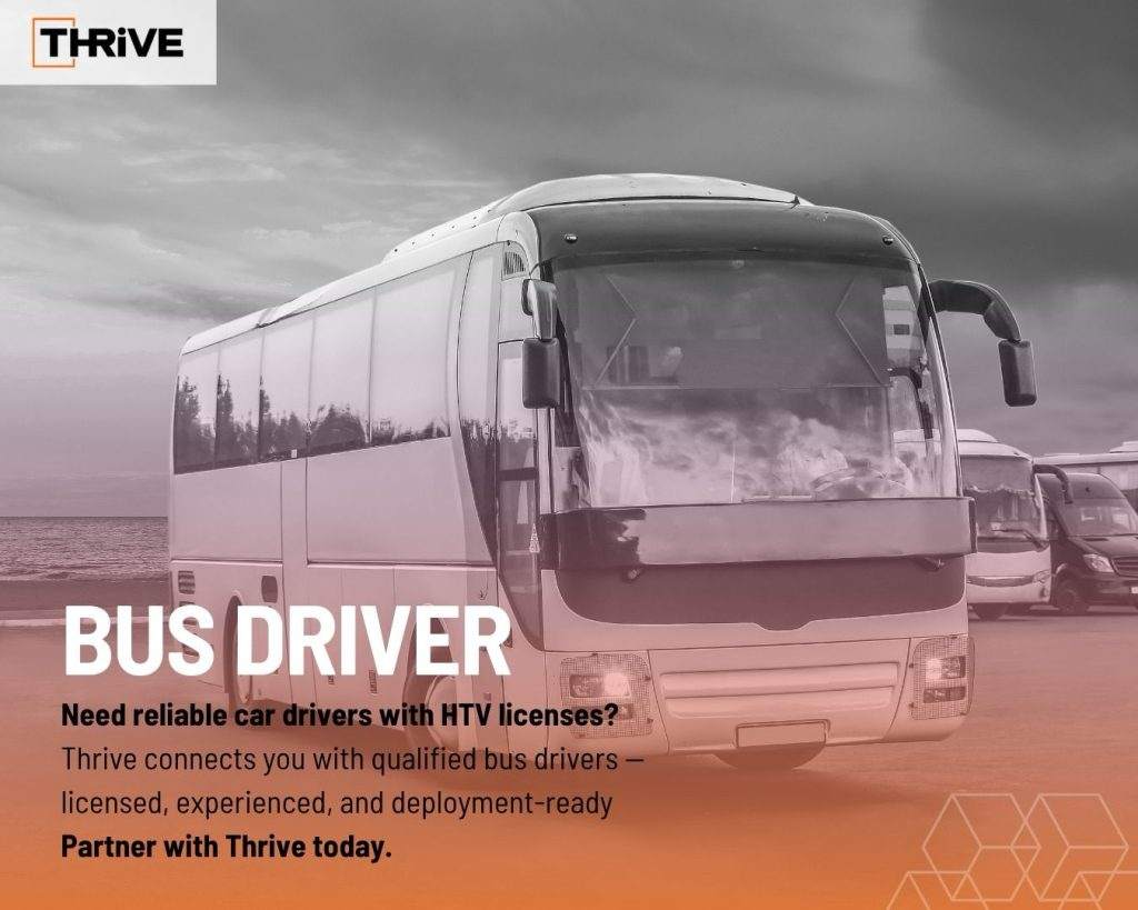 Looking for reliable bus drivers with HTV licenses?Thrive connects you with qualified, experienced, and deployment-ready drivers — so your operations never slow down.