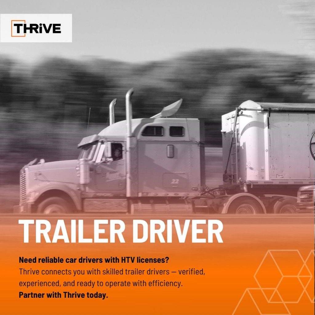 Looking for reliable trailer drivers with HTV licenses? Thrive connects you with trained, verified professionals ready to keep your operations moving.